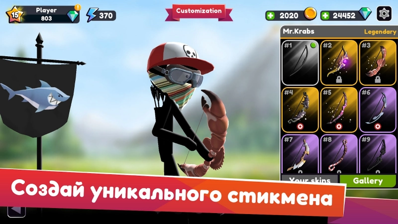 Каждый участник сражения имеет в распоряжении щит, которым можно защищаться от летящих стрел, но нужно понимать, что это снижает шанс быстро уничтожить своего противника. Победы в сражениях будут приносить определенное количество денежного вознаграждения, а также коробку, в которой могут быть различные ресурсы. Эти ресурсы можно будет потратить на модернизацию своего снаряжения, а именно лука, стрел, щита, знамени и даже на самого персонажа. Всего подготовлено двенадцать луков и десять стрел, каждые из которых обладают различными эффектами. Взломанная версия позволит использовать неограниченное количество игровой валюты.