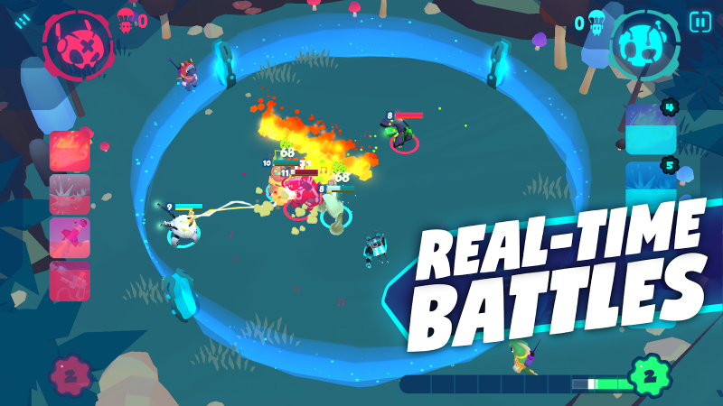 Сражения происходят на закрытых аренах, где две команды будут биться до победного конца, пока одна из них не будет полностью повержена. Свою команду ботов можно прокачивать и оснащать качественной экипировкой с мощным снаряжением. Для прокачки своих бойцов потребуются специальные предметы, которые могут выпадать из уничтоженных врагов или найденных сундуков, а также их можно приобретать за игровую валюту. Установив взломанную версию, можно получить возможность совершать покупки, даже если недостаточно денег, что поможет быстрее развить свою команду и стать непобедимыми.