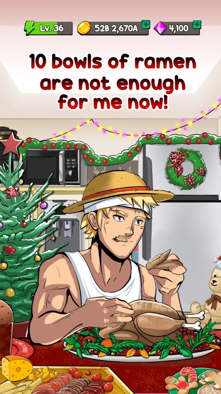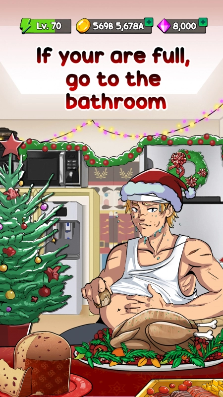 События игры разворачивают вокруг главного героя и его необычно сильном пристрастии к еде, которое началось после того как он осознал свою скучную жизнь и решил стать лучшим в мире едоком. Он может целыми днями поглощать пищу, а задача геймеров заключается в том, чтобы помогать герою в его хобби. Для этого нужно нажимать на экран устройства, чтобы персонаж ел и набирал вес, что делает его счастливым. Стоит отметить, что цели у игры нет, а сам геймплей можно назвать практически бесконечным. Но чтобы растянуть свой желудок, нужно постепенно напихивать его самой разнообразной едой, паста, бургеры, пирожные, пончики, печенье, вафли и многие другие блюда. А когда прихватит живот, нужно немедленно отправлять в туалет, чтобы опорожниться и снова приступить к поглощению еды.
