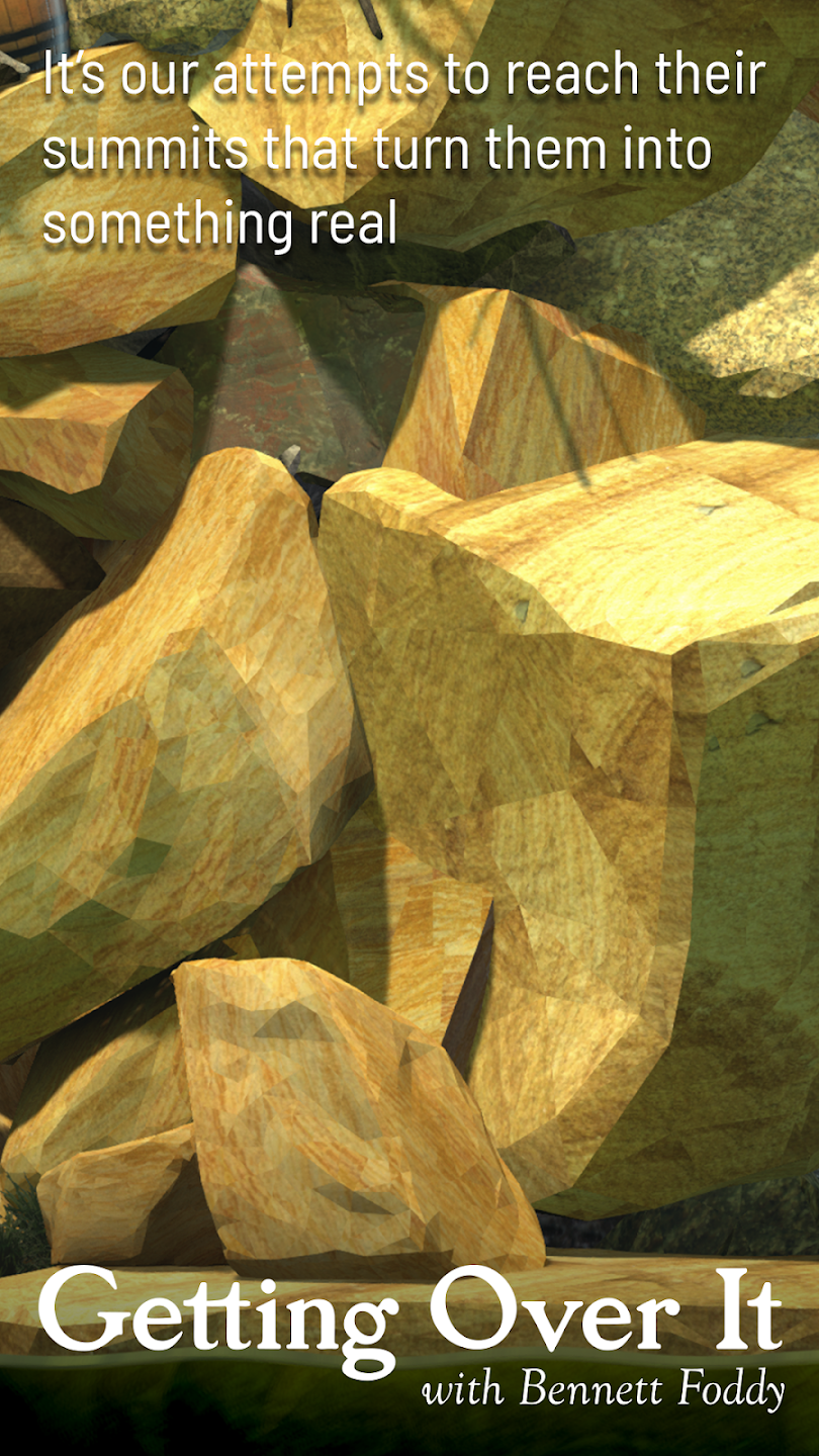 В данном хардкорном проекте, для людей с крепкими нервами, нужно взять контроль над мужчиной, который сидит в котле и орудует кувалдой, используя ее в качестве опоры, чтобы взобраться на вершину. Именно достижение наивысшей точки горы и является конечной целью игры. Однако на деле все намного сложнее, чем кажется на первый взгляд, как минимум потому, что геймеры могут в один момент потерять весь накопленный игровой процесс, сорвавшись с уступа или обрыва, персонаж пролетит все пройденное расстояние вниз, оказавшись у самого подножья, и придется начинать с самого начала.
