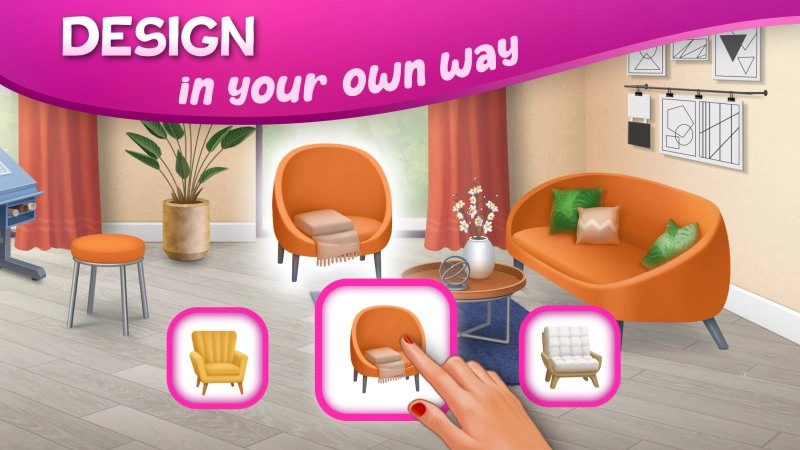 Дизайнвиль: Merge & Дизайн – головоломка три в ряд с элементами симулятора дизайнера интерьера, где игроку предстоит вместе с главной героиней решать интересные задачи и заниматься творческим процессом.
