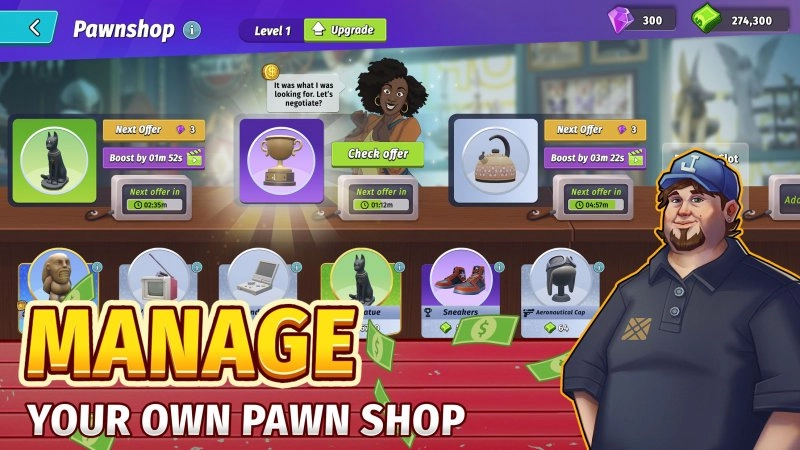 Накопив достаточное количество денег, можно построить и открыть свой ломбард, где будут продавать разнообразные предметы и крутиться большие деньги. Такое заведение требует понимания многих мелких аспектов данной сферы деятельности, а также необходимо иметь чутье на дорогие вещи, которые можно приобрести по копеечной цене. Скачав взломанную версию, можно получить бесконечное количество игровой валюты, что даст возможность достигнуть цели намного быстрее.