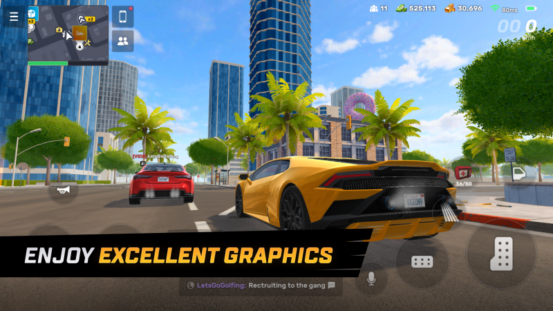 Стоит отметить, что представлено огромный выбор транспортных средств, начиная от большого разнообразия моделей автомобилей и заканчивая самолетами, вертолетами и лодками. Также есть возможность персонализировать внешний вид своего персонажа, менять ему одежду, прическу и аксессуары, чтобы создать ему крутой гангстерский образ. Что касается локаций, здесь их достаточно много и все можно исследовать в поисках чего-нибудь интересного, например, можно отправиться в пустыню, гетто, аэропорт, на пляж и многие другие места. Есть и встроенный полноценный чат, где можно общаться с друзьями или другими пользователями во время многопользовательского режима. Взломанная версия позволит использовать мод меню с множеством различных возможностей, среди которых бессмертие, быстрая машина, супер-скорость, неограниченная аммуниция и многое другое.