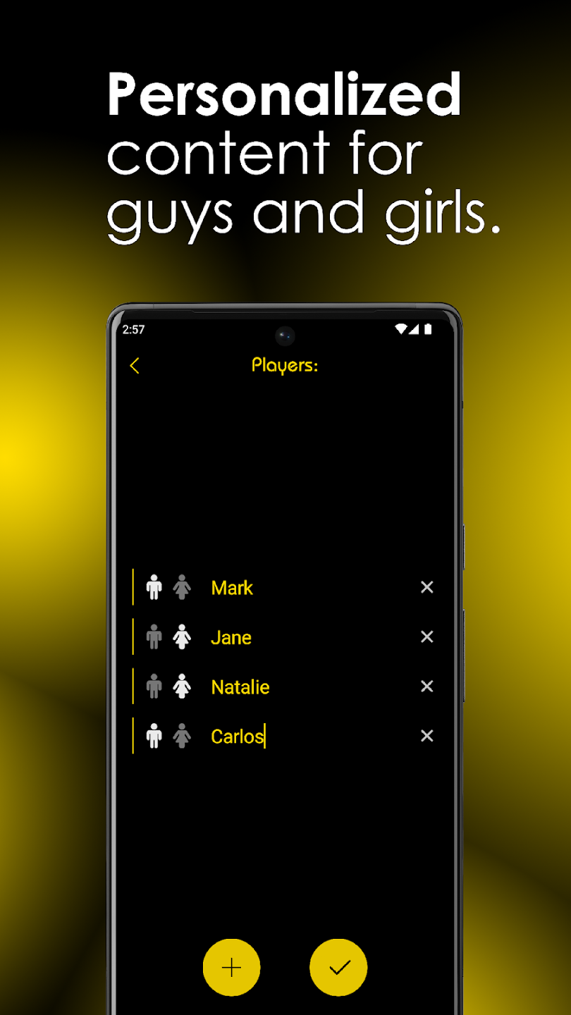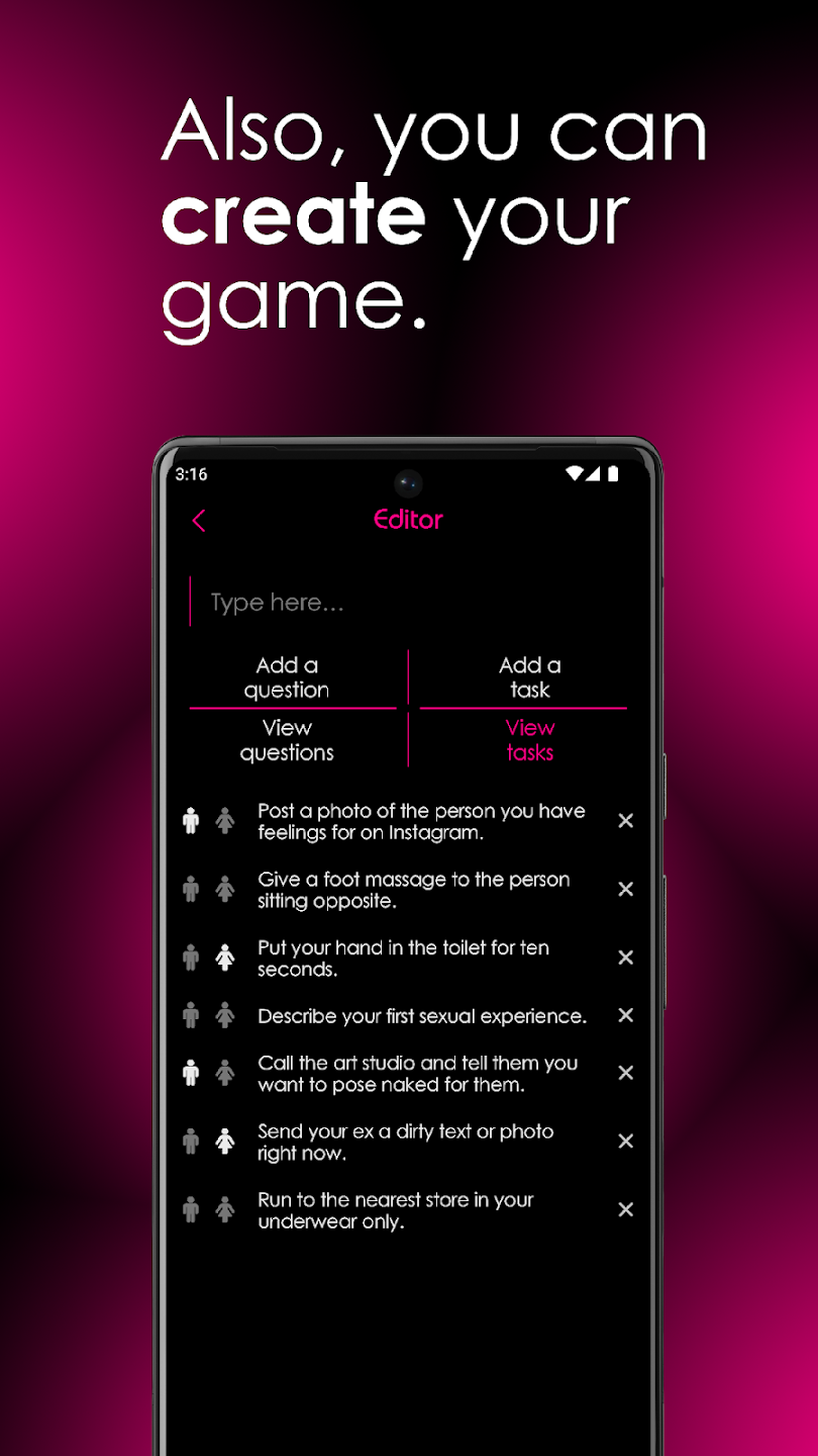 Правила все так же остаются неизменными, также есть несколько различных игровых режимов и пять уровней сложности. Встроенный чат позволит познакомиться с новыми людьми через приложения для знакомств. Стоит отметить, что в данной игрой можно наслаждать и в кругу семьи, что позволит больше узнать о своих самых близких людях, своем детстве, семейных секретах, мечтах и желаниях. Всего представлено тысячи оригинальных вопросов и заданий, что не дадут заскучать. Но также можно создать свои собственные вопросы и задания. Нет ограничений по количество игроков, что отлично подойдет для супер-большой компании. В игре множество плюсов, узнать обо всех можно самостоятельно опробовав ее в деле, а взломанная версия разблокирует все вопросы.