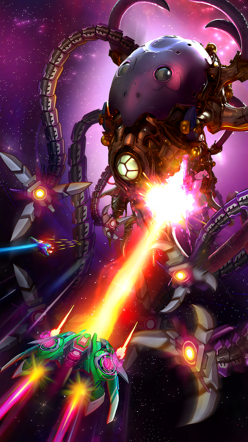 На протяжении всего игрового процесса нужно будет ликвидировать маленькие орды истребителей, чтобы в дальнейшем встретиться с гигантскими боссами, мощь которых будет в разы больше и одолеть которых будет не так просто. Также будут встречаться уровни, где опасность будет не только со стороны инопланетян, но и от различных ловушек. За прохождение уровней пользователи будут получать денежное вознаграждение, а также боеприпасы и улучшения. За заработанные средства можно будет купить новые летательный аппарат или прокачать уже имеющийся, улучшив его технические характеристики. Взломанная версия позволит использовать неограниченное количество энергии, режим бога, убивать одним ударом и использовать весь разблокированный контент.