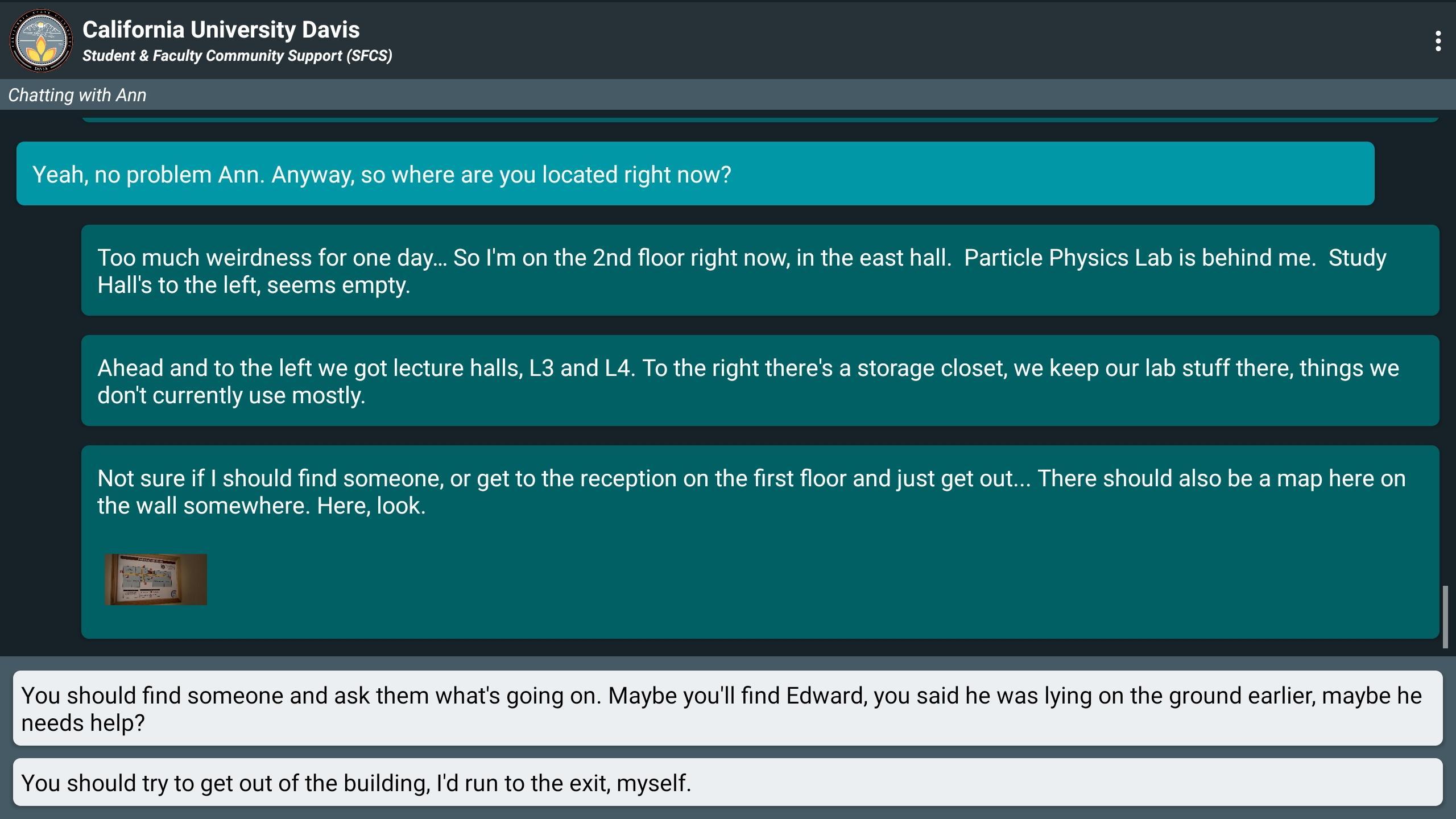Весь игровой процесс построен в формате переписки в выдуманном мессенджере, где через сообщения нужно разбираться в ситуации. Протагонист будет вести беседу с одним из ведущих специалистов лаборатории, который отвечает за эвакуацию. Стоит отметить, что в составе сообщений будет не только текст, но также символы, таблицы, диаграммы, фото и видео. Задача игроков заключается в том, чтобы разобраться с полученной информацией и своевременно дать ответ, который может повлиять на ход событий.