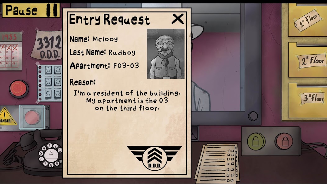 Что касается непосредственного самой видеоигры, то геймеры выполняют роль швейцара в большом жилом доме. Сеттинг квеста довольно странный и в нем обитают существа, которых называют двойниками. Они скрываются под людей, но на самом деле являются чудовищами, которые пожирают их. Игрок должен проверять документы у всех, кто входит в дом, а также сравнивать данные с визуальными наблюдениями людей, а затем решать, является ли посетитель двойником или нет.