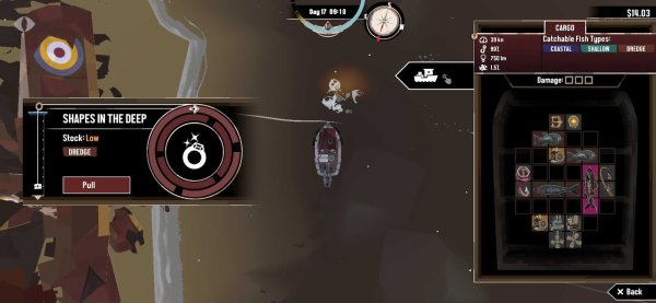 DREDGE полна секретов и занятий. Вы будете изучать подводных обитателей, выполнять поручения, искать сокровища, открывать мутации и совершенствовать судно. Прогрессия выполнена по правилам RPG – копите ресурсы, создавайте детали и с их помощью совершенствуйте характеристики корабля. После этого откроется доступ к новым удочкам, а значит, и к более редким видам рыб.