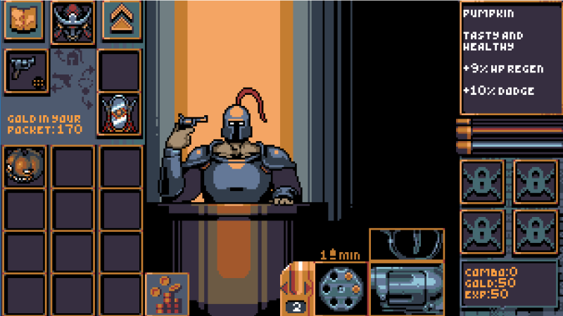 Простая визуально и необычно интересная с точки зрения геймплея Roulette Knight способна затянуть вас на десятки часов. Автор совместил, казалось бы, совсем неподходящие друг другу вещи – средневековье и русскую рулетку. Мы играем за не самого умного, но очень смелого рыцаря. По какой-то причине у него есть револьвер, а также он умеет с ним управляться. Но единственное применение – это стрельба в себя со случайным патроном. Каждая осечка приводит к получению опыта и золота, которые пригодятся для прокачки древа навыков и покупки ценных вещей. Боевой выстрел снимает часть здоровья и не дает бонусов. После поражения придется начинать забег со стартовой зоны. При этом, не сохраняется часть прогресса, а предметы, события и бонусы перемешиваются. Именно в этом и заключается схожесть с жанром rouge like приключений.