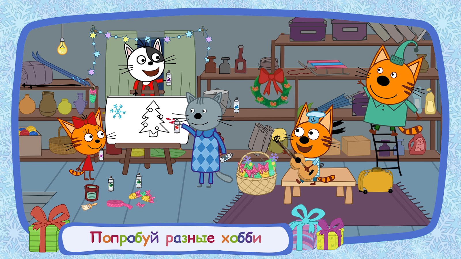 Три Кота – Кукольный домик еще больше раскрывает историю главных героев и позволяет повлиять на их быт, занятия и различные ситуации. Качайте версию без ограничений и рекламы, чтобы ребенок свободно наслаждаться игрой по любимому мультсериалу.
